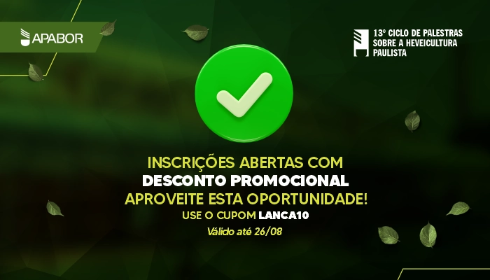 Estão ABERTAS as inscrições para o 13º Ciclo de Palestras sobre a Heveicultura Paulista da APABOR!