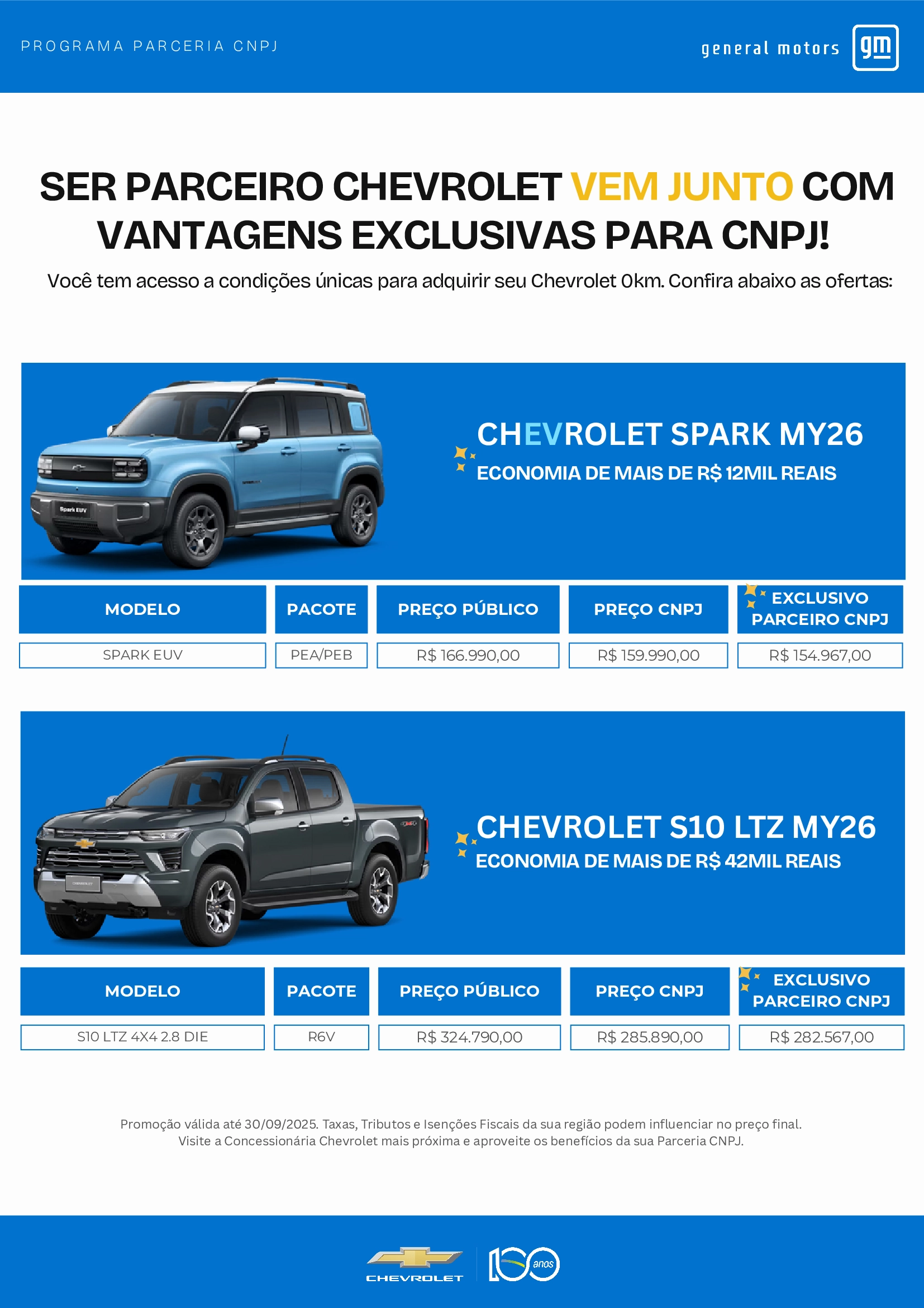 • Pós-vendas: Nossas oficinas buscam excelência contínua, sendo a primeira Chevrolet do Brasil a obter nota máxima de satisfação do cliente.