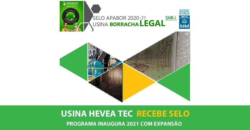 Destaque para a Usina Hevea Tec que recebeu o Selo Apabor Borracha Legal 2020-21.